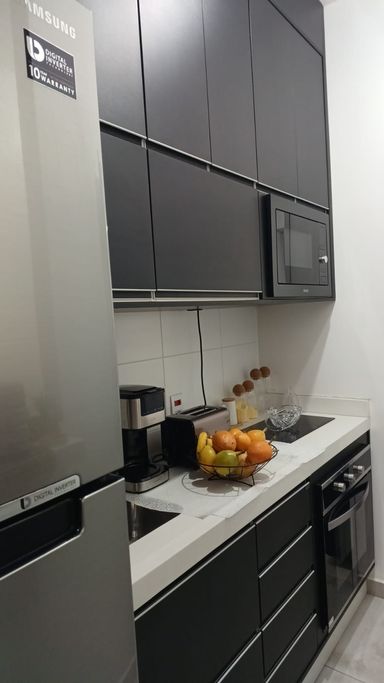 Eletrodomésticos inclusos: geladeira, máquina lava e seca, e cooktop;
