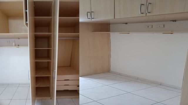 Armários planejados no quarto e na cozinha, oferecendo mais funcionalidade e organização;