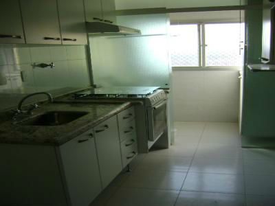 Cozinha funcional com armários, gabinete, fogão e depurador instalados;